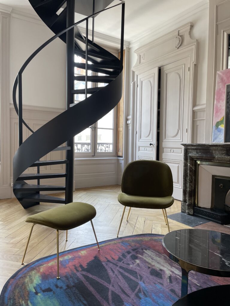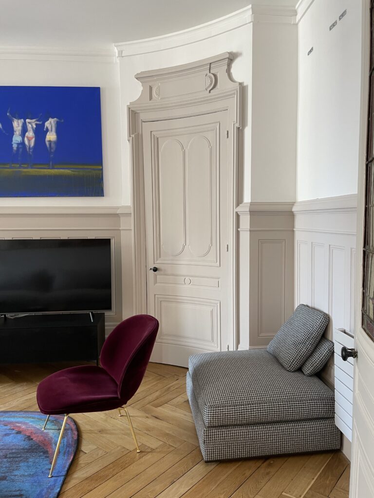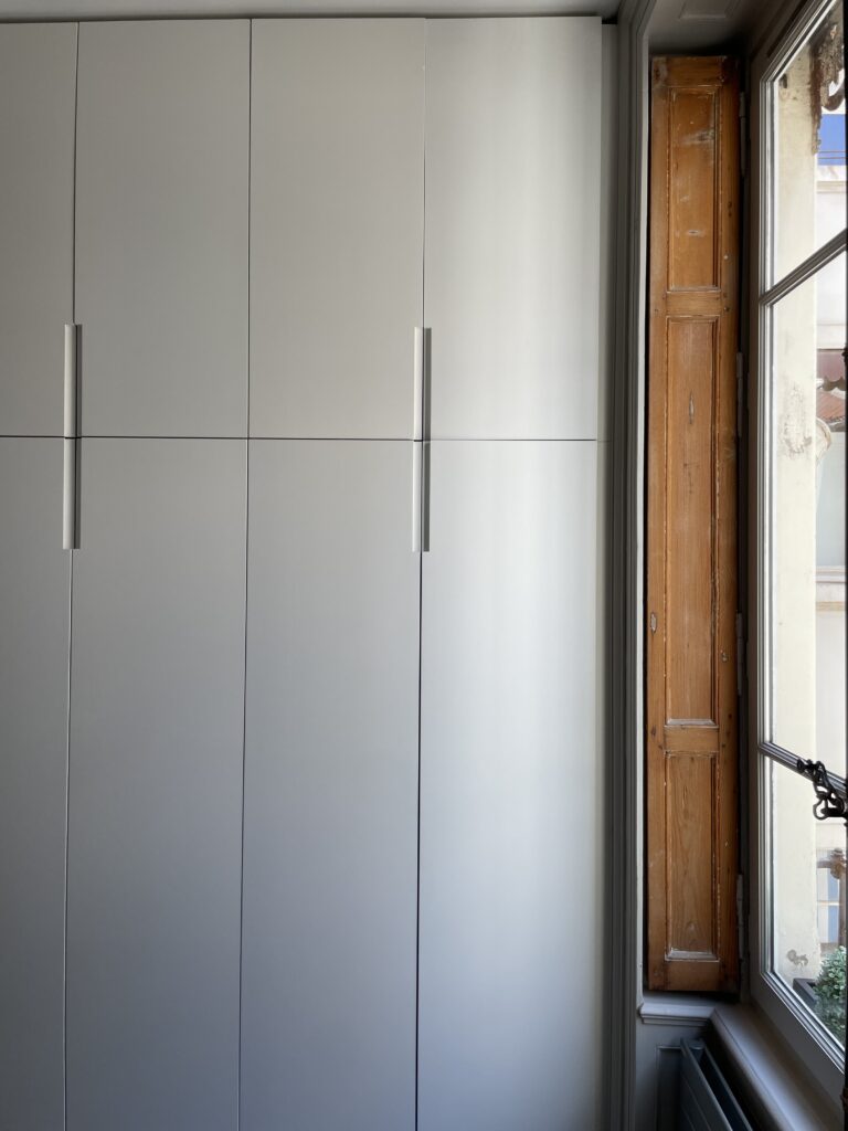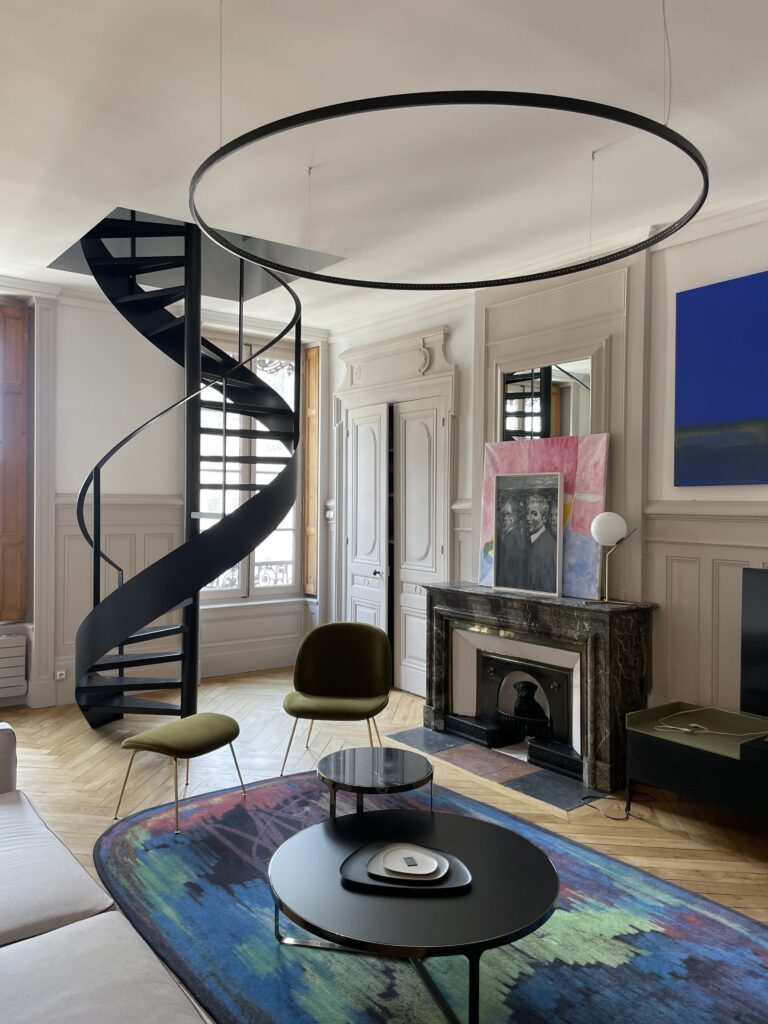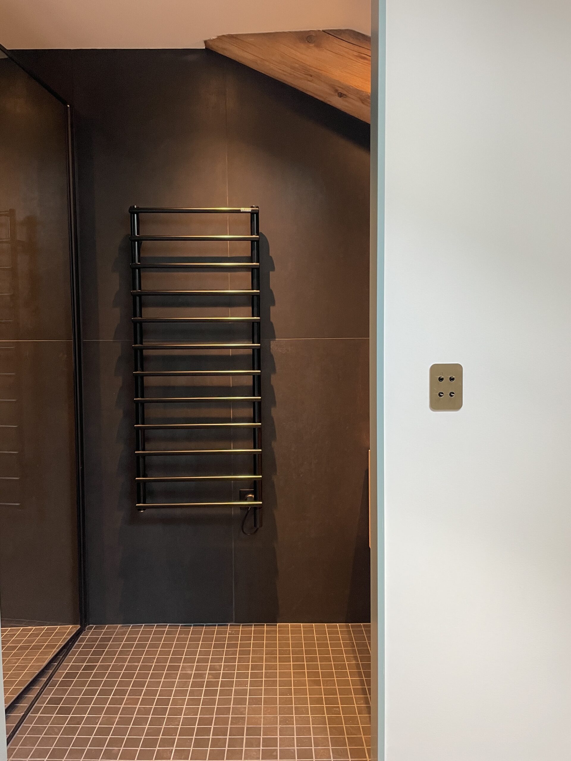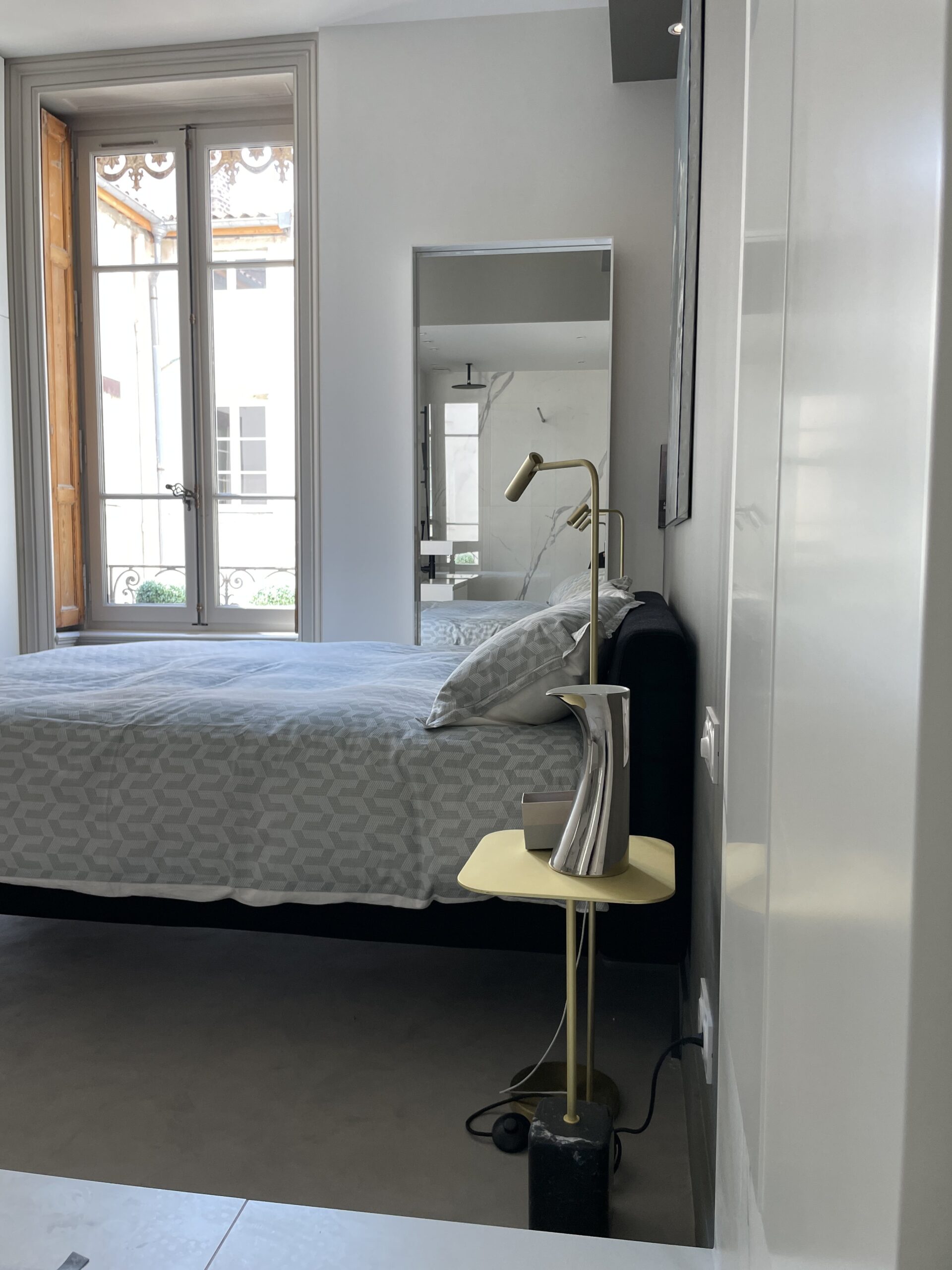 Aménagement de comble, avec création d'une trémie et reprise et sous oeuvre. Création d'une suite parentale avec isolation complète des combles, douche à l'italienne, ensemble meuble vasque CIELO, robinetterie GESSI, radiateurs TUBES, cabine de douche SUR MESURE et carrelage de chez PLATTARD, dressing sur mesure, parquet de chez GAGNEU, appareillage électrique MELJAC, luminaires XAL, garde corps en verre sur mesure. (Mise en place d'un escalier en partenariat avec ESCALIERS DECORS)